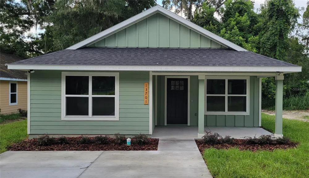 VALUE, VALUE, VALUE. Back on the market! Your brand new home offers exceptional niceties at a great price. This very house appraised at $265,000 in August of this year. The exterior is covered with low maintenance Hardie Board siding with clips where the boards abut. The windows are high efficiency vinyl. A concrete driveway provides ample room for you to park two cars side by side. You will appreciate the covered front porch that provides ample room for a bench or rocking chairs. The back covered porch looks out over a 50 foot wide yard that would be great for get togethers. Wanna have the game going while out back? No problem. You can mount a TV on a wall in the back porch and plug it right into the internet and power jacks that are installed for such purpose. No cords hanging down! Step inside the front door to the living room and waterproof vinyl plank flooring throughout. Not sure if you want to mount your TV on the east or west wall? Again, no problem. Internet and power jacks are on both walls. Furthermore, 2x6 horizontal boards have been placed amongst the studs near the plugs to make mounting easy. To your left you will find two bedrooms. A bathroom with a tile shower and quartz vanity separates the bedrooms and pampers your family or guests. Open the frosted glass door that reads “Laundry” off of the living room and you will find hook ups for your washer and dryer. You will also see a high quality Carrier air handler. Continue through the living room past the dining room area to the island of your dream kitchen. Guests can sit on one side of the island while your pots and pans reside in convenient, dovetail constructed drawers on the other side. Beautiful quartz countertops cover your all wood cabinets. Tile backsplashes, a stainless steel undermount sink and a glass top stove make clean up easy. The microwave, oven, refrigerator with ice maker, and dishwasher are all matching LG stainless steel. Want to easily charge your phone in the kitchen? An outlet is provided that has USB ports built into it. Off the kitchen the primary suite welcomes you with privacy and a spacious walk in closet. Internet, power jacks and a 2x6 horizontal stud have been installed should you want to mount a TV up high and not have the cords be visible. Slide the barn door to reveal the wall to wall quartz countertop in the primary bathroom oasis. Two sinks sit on top of all wood cabinets and are separated by three drawers. Indulge in your walk in shower that not only has two shower heads but two temperature controls. Afraid of running out of hot water? Don’t be. The home has a tankless hot water heater. There are fans throughout the house. There is no HOA. There are no deed restrictions. 1 year builder warranty included. Need groceries? Hitchcock’s is 1 mile away. Publix is about 2 miles away. A park with a playground is four blocks away. The interstate is less than two miles away. Thereafter, Gainesville is merely one exit south. The listing agent has an interest in the company that owns the house. Schedule a showing today and be impressed with the little things that make this home so special.