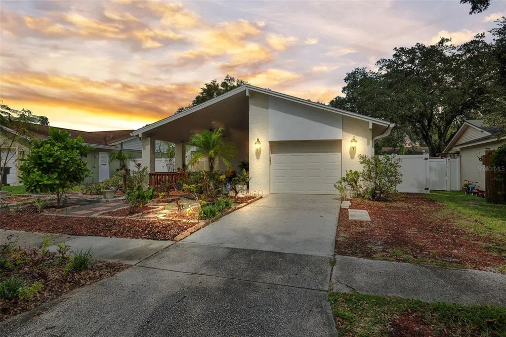 ASK FOR THE INFORMATION OF SELLER CONCESSION. Nestled in the highly sought-after Settlers Pointe subdivision, this inviting home offers a thoughtfully designed space. This 2-bedroom, 2-full bathroom residence boasts a spacious front porch with a versatile Florida room with central air-conditioning and a screened lanai, ideal for avid gardeners or those seeking a cozy starter, pet-friendly fenced home! The generous front porch welcomes you into the home. Step inside to discover a bright, open floor plan with tile flooring throughout—no carpet in sight! The updated kitchen features beautiful wooden cabinetry and ample counter space, perfect for preparing meals or entertaining guests. The air-conditioned Florida room, wrapped in newer glass windows, offers a serene space to relax and enjoy the year-round tropical climate. Large sunroom (enclosed Florida Room) IS NOT INCLUDED in the heated square footage. Outside, you'll love the screened lanai that overlooks a private, fenced-in garden, providing a peaceful oasis for outdoor living. The tropical landscaping adds a touch of paradise to your backyard, creating the perfect spot for unwinding. This home offers the added benefits of NO HOA and NO CDD, giving you more freedom and flexibility. It's a rare find in this! Located in a great spot, this home offers easy access to major throughways, making commuting a breeze. You’re just minutes from USF, I-275, downtown Tampa, and Tampa International Airport, providing convenience for both work and travel. Don’t miss your chance to make this charming residence yours. Contact us today to schedule a tour!