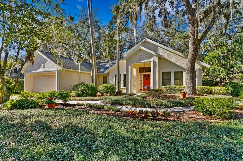 One or more photo(s) has been virtually staged. Nestled in the heart of Tampa Palms, this serene 4-bedroom, 2.5-bathroom home offers 2,123 square feet of thoughtfully designed living space. Situated on a unique pie-shaped lot on a quiet cul de sac, the property exudes tranquility and harmony, embodying the principles of Feng Shui throughout. The home's enchanting exterior welcomes you with meticulously maintained lush landscaping that evokes the feeling of a peaceful garden retreat. When entering the home you are greeted by the formal living room that features laminate wood flooring and ample amount of sunlight that flows into the formal dining room. The dining room has been transformed into a versatile meditation or yoga space, offering a calming environment for relaxation and self-care. The kitchen boasts resurfaced cabinets that blend functionality with style. You'll love how the breakfast nook and kitchen overlook the expansive pie-shaped backyard. The grounds are amazing with a Zen garden, calming water features and patterned stone walkways add to the sense of serenity. Other updates include a new roof (2024), new carpet (2024), refinished cabinets in all bathrooms (2023), refurbished a/c system with new coil and fan (2024), new heat pump water heater (2023) and new exterior paint (2023). As an added feature you are walking distance to Tampa Palms Elementary School and the Compton Park Community Center! Compton Park hosts a community pool, tennis courts, playground, soccer fields, basketball court and community meeting rooms. The property's prime location ensures convenience to top-rated schools, shopping centers, and restaurants. With easy access to I-75 and proximity to the YMCA, USF, Florida Hospital, Moffitt, Veterans Hospital, Wiregrass Mall, and Tampa Premium Outlet Mall. Yes, you can have it all! This home is move-in ready and ideal for those seeking a balance of practicality and mindfulness. Welcome Home!