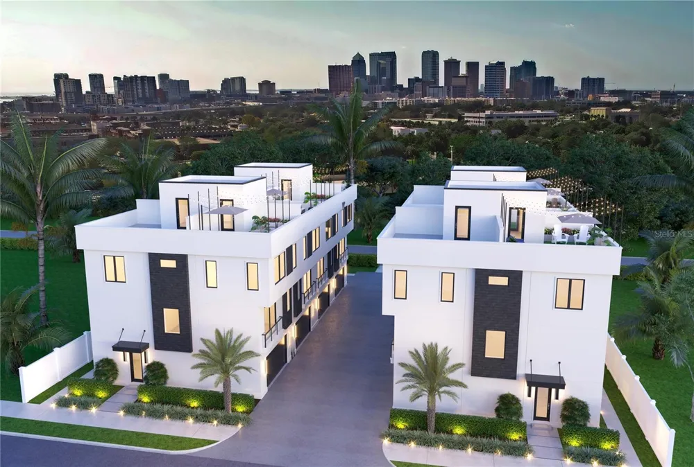 One or more photo(s) has been virtually staged. Under Construction. Welcome to the pinnacle of urban luxury living in one of Tampa's most vibrant and walkable neighborhoods. NuHeights Townhomes, in Tampa Heights, is an exclusive collection of 8 luxury residences steps from Armature Works, the Tampa Riverwalk, and the city's best dining and entertainment options. Spanning multiple levels, the stunning residence offers 3 spacious bedrooms, each with its own en-suite bath, plus a stylish powder room for guests. The interior is bathed in natural light from oversized windows, over 9 ft ceilings and sleek luxury modern finishes throughout; wide-plank engineered hardwood, Delta fixtures, custom European cabinetry, GE cafe Appliances, quartz countertop with waterfall edge, floor to ceiling glass staircase wall and high-end fixtures. At the top, your private rooftop terrace awaits, the perfect place to unwind with a glass of wine and soak in sunset views over the Tampa skyline. Additional features include smooth drywall, drop ceiling, custom mill wood wall accents, Juliette balcony, 2-car oversized garage, energy-efficient systems and impact glass windows and doors. Just a 10 minute drive to Tampa International Airport, 5 minutes to Downtown Tampa, major highways, and Tampa General Hospital, and only 35 minutes to the Gulf beaches. Whether you're seeking an upscale primary residence or an exceptional investment in a rapidly growing neighborhood, this is city living, elevated.